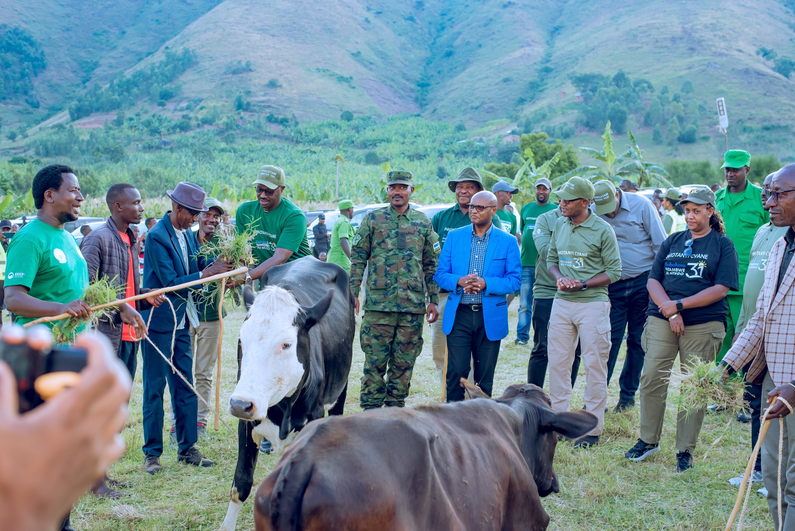 Ati: “Nari mbayeho mu buzima busanzwe nk’abandi baturage. Gusa kuba mpawe iyi nka bigiye kunyongerera impinduka mu buzima aho nzakamira umuryango wanjye. Ikindi murabizi ko Leta idushishikariza guhera ku byo dufite tugaharanira gutera imbere, inka izamfasha kubona ifumbire, mpinge mfumbira bityo nongere umusaruro. Muri rusange uyu munsi umbereye andi mateka.”