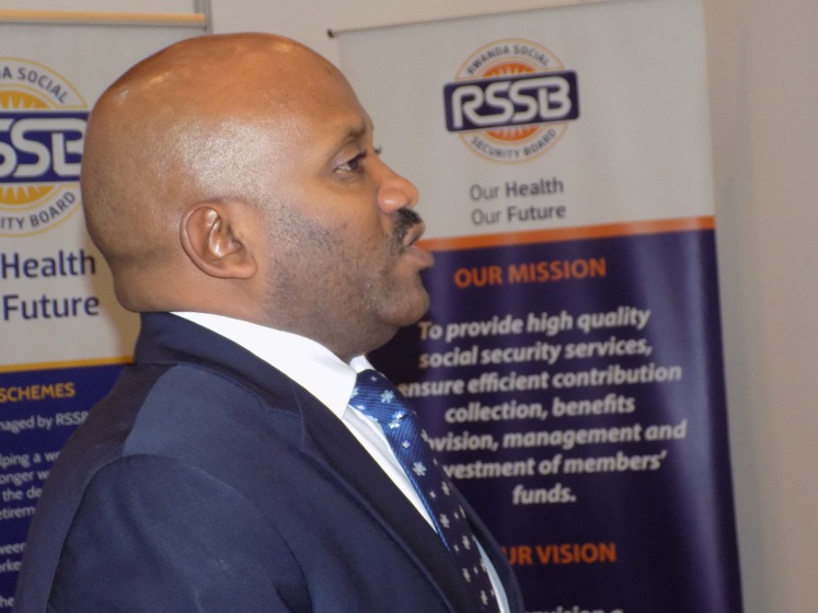 Umuyobozi Wungirije ushinzwe ishoramari muri RSSB Sebabi Bosco aganira n’itangazamakuru